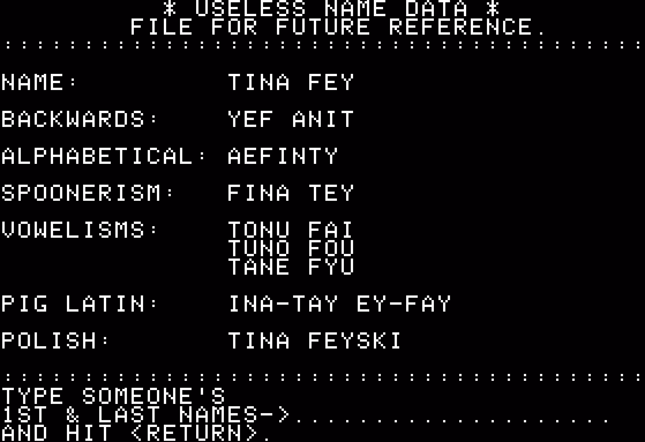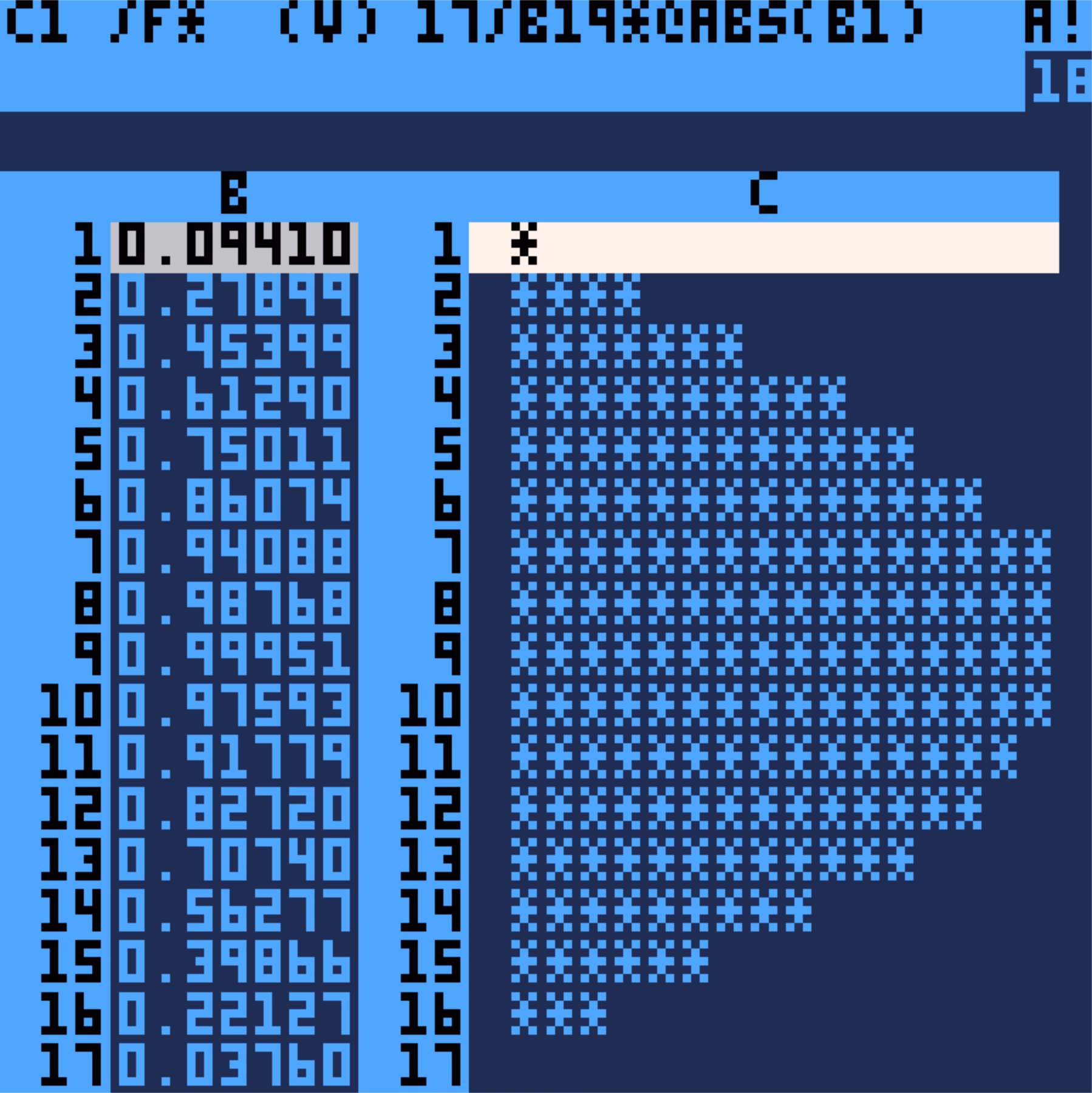 Anyway. Drum seems to be having fun with the project, and I appreciate that. There are little custom visuals and jokes in every post. Also, as an example, you can download an absolutely delightful recreation of VisiCalc called PicoCalc and run it on your Mac. I have never expected a spreadsheet to be so cute: